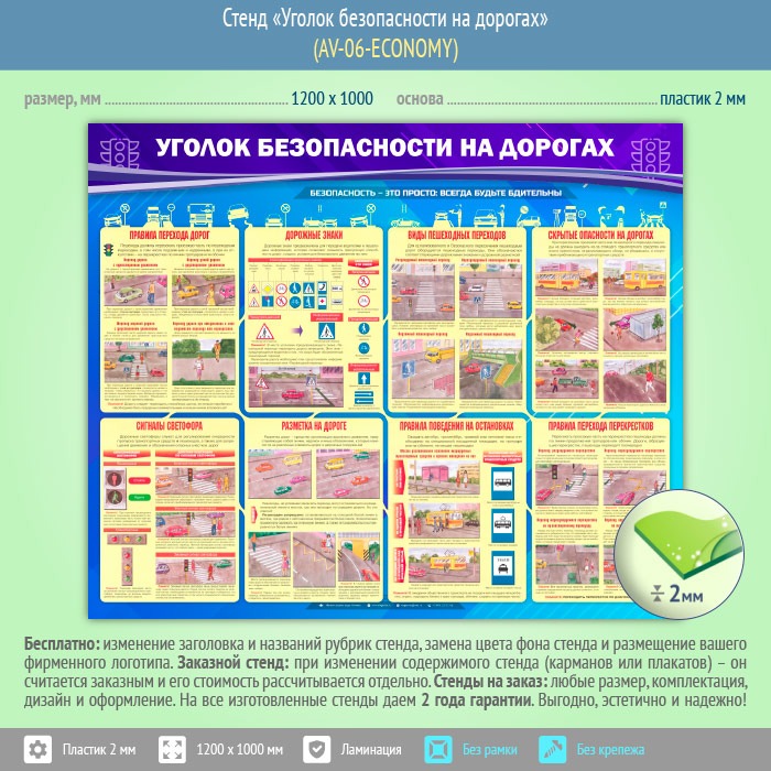 Стенд «Уголок безопасности на дорогах» (AV-06-ECONOMY) в Королёве купить