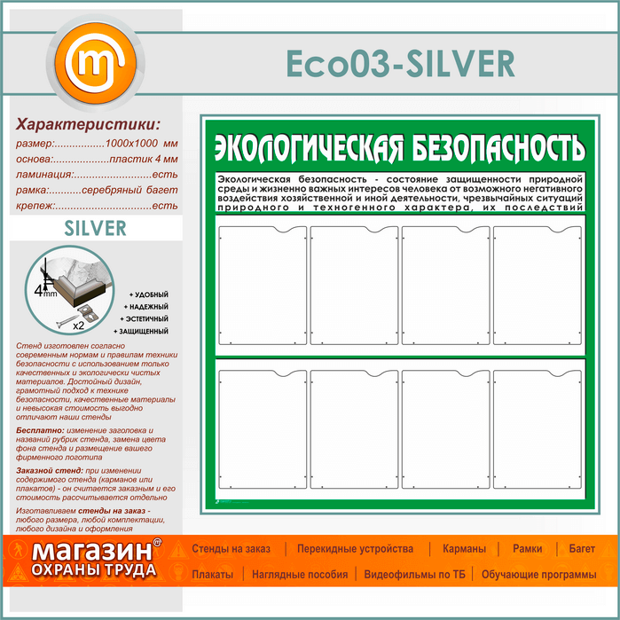 Стенд «Экологическая безопасность» с 8 карманами (ECO-03-SILVER) в Королёве купить