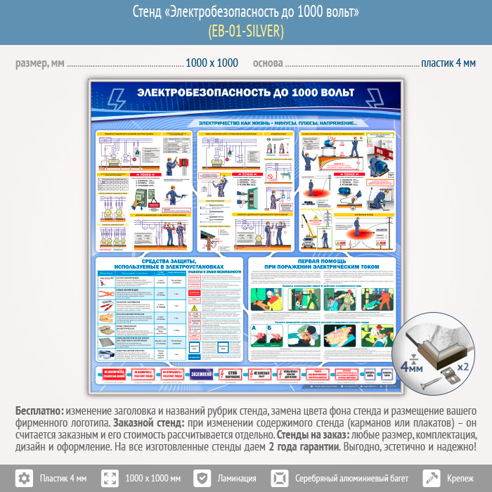 Стенд «Электробезопасность до 1000 вольт» (EB-01-SILVER) в Королёве купить