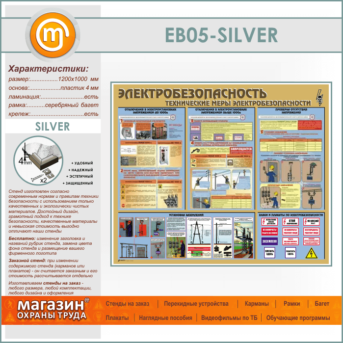 Стенд «Электробезопасность. Технические меры электробезопасности» (EB-05-SILVER) в Королёве купить
