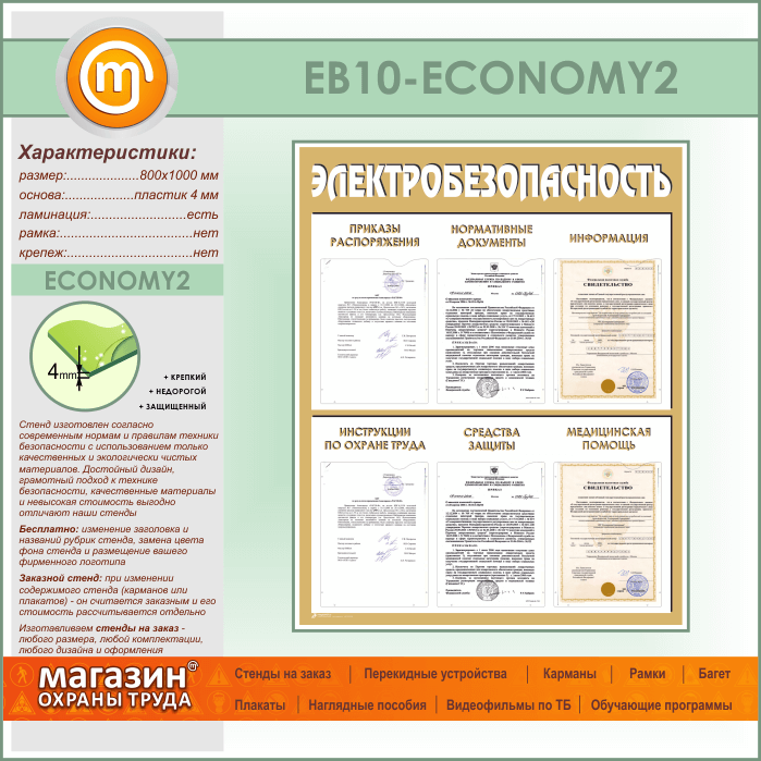 Стенд «Электробезопасность» с 6 карманами (EB-10-ECONOMY2) в Королёве купить