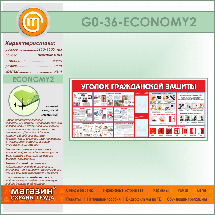 Стенд «Уголок гражданской защиты» c 2 карманами (GO-36-ECONOMY2) в Королёве купить