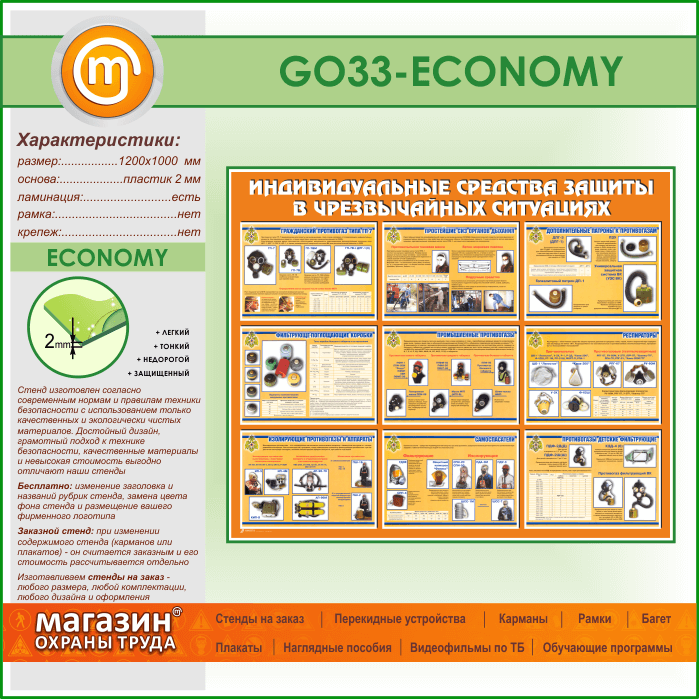 Стенд «Индивидуальные средства защиты в чрезвычайных ситуациях» (GO-33-ECONOMY) в Королёве купить