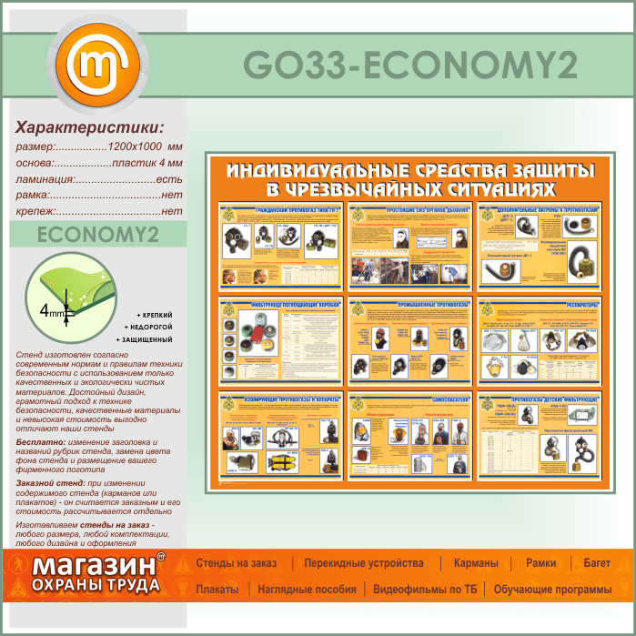 Стенд «Индивидуальные средства защиты в чрезвычайных ситуациях» (GO-33-ECONOMY2) в Королёве купить