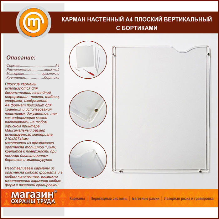 Карман настенный А4 плоский вертикальный с бортиками в Королёве купить