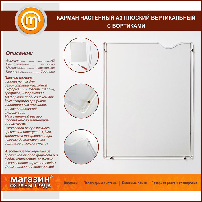 Карман настенный А3 плоский вертикальный с бортиками в Королёве купить