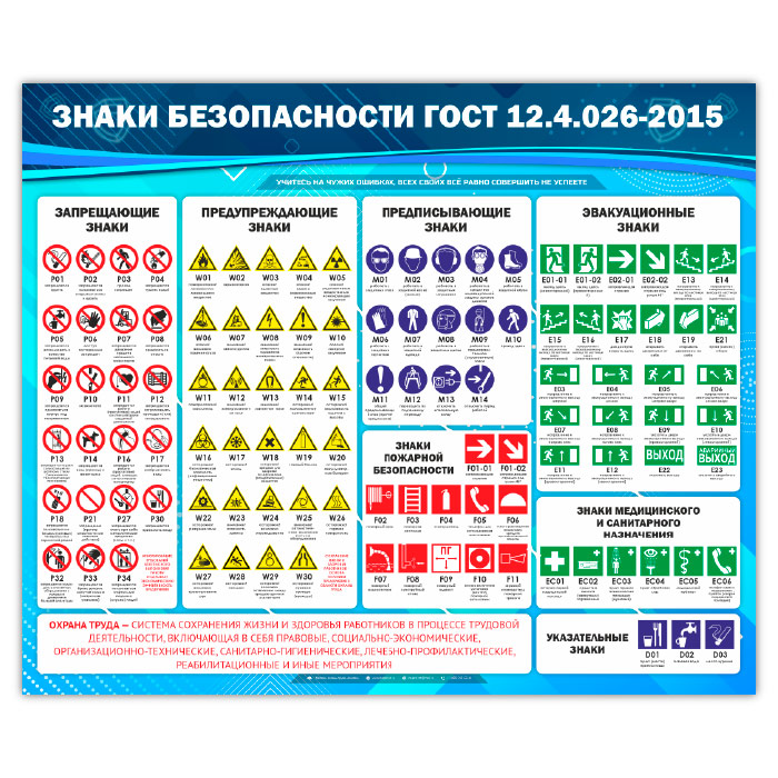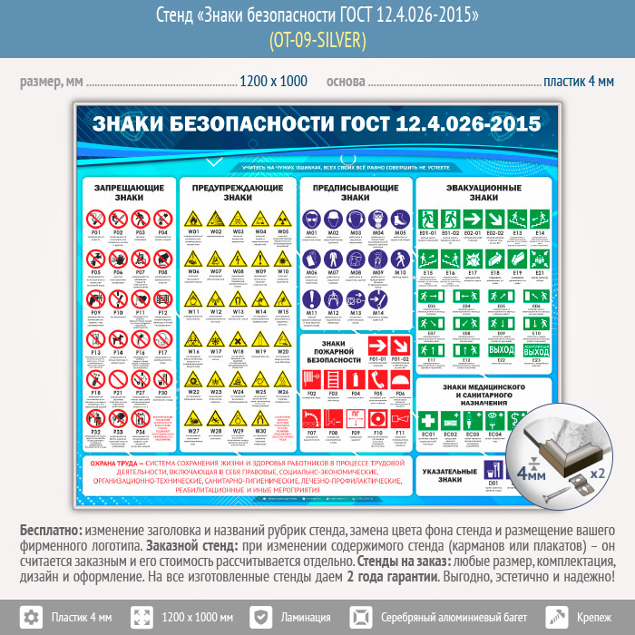Стенд «Знаки безопасности ГОСТ 12.4.026-2015» (OT-09-SILVER) в Королёве купить