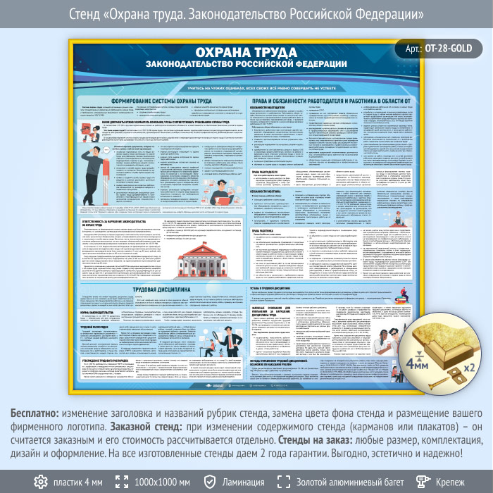 Стенд «Охрана труда. Законодательство Российской Федерации» (OT-28-GOLD) в Королёве купить