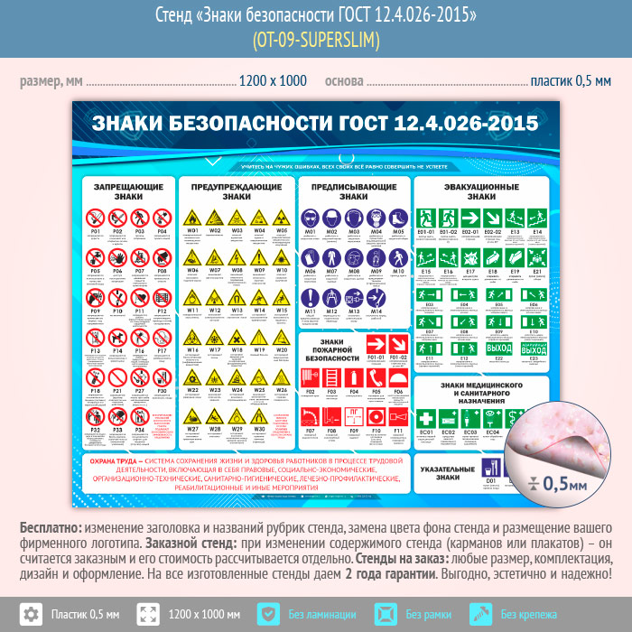 Стенд «Знаки безопасности ГОСТ 12.4.026-2015» (OT-09-SUPERSLIM) в Королёве купить