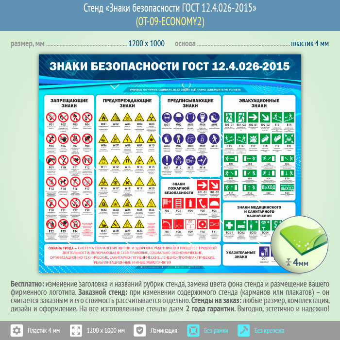 Стенд «Знаки безопасности ГОСТ 12.4.026-2015» (OT-09-ECONOMY2) в Королёве купить