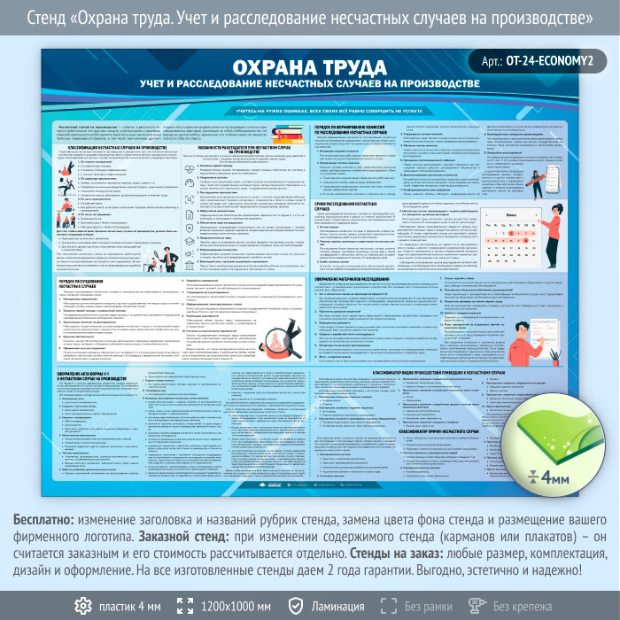 Стенд «Охрана труда. Учет и расследование несчастных случаев на производстве» (OT-24-ECONOMY2) в Королёве купить