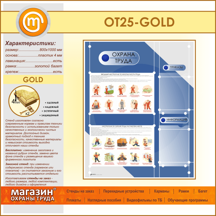 Стенд «Охрана труда» с 2 плоскими карманами (OT-25-GOLD) в Королёве купить