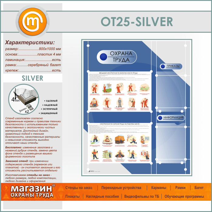 Стенд «Охрана труда» с 2 плоскими карманами (OT-25-SILVER) в Королёве купить