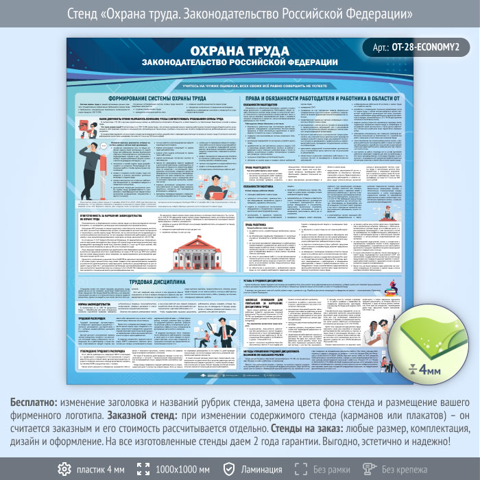 Стенд «Охрана труда. Законодательство Российской Федерации» (OT-28-ECONOMY2) в Королёве купить