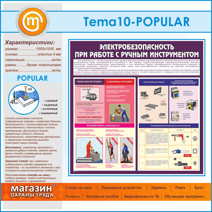 Стенд «Электробезопасность при работе с ручным инструментом» (TM-10-POPULAR) в Королёве купить